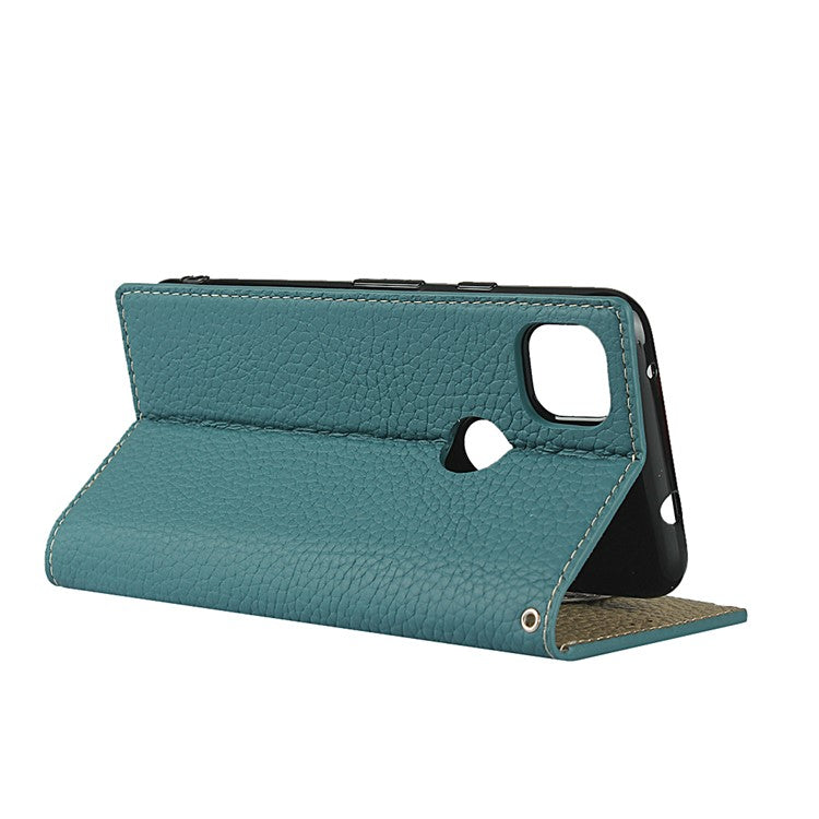 Litchi Skin Genuine Leather Coated TPU Stand Case for Google Pixel 4a - Baby Blue
