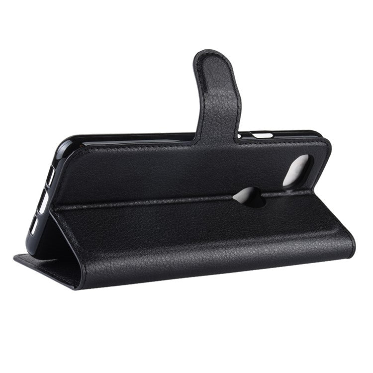 Litchi Skin PU Leather Wallet Case with Stand for Google Pixel 3a - Black