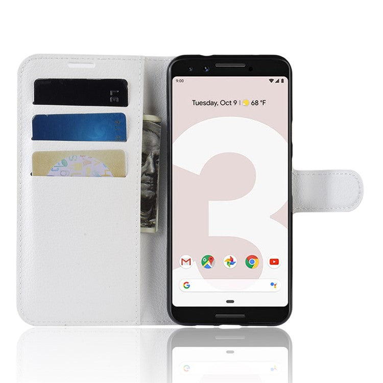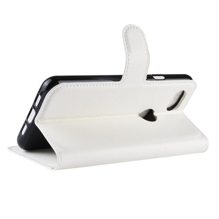 Litchi Skin PU Leather Wallet Case with Stand for Google Pixel 3a - White