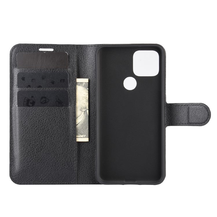 Litchi Surface Unique Shell Leather Case with Stand for Google Pixel 4a 5G/Pixel 5XL - Black