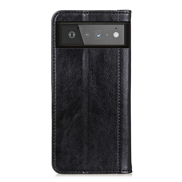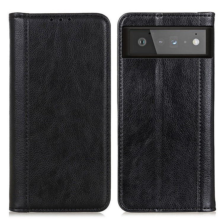 Litchi Texture Split Leather Auto-absorbed Wallet Stand Case Cover for Google Pixel 6 - Black