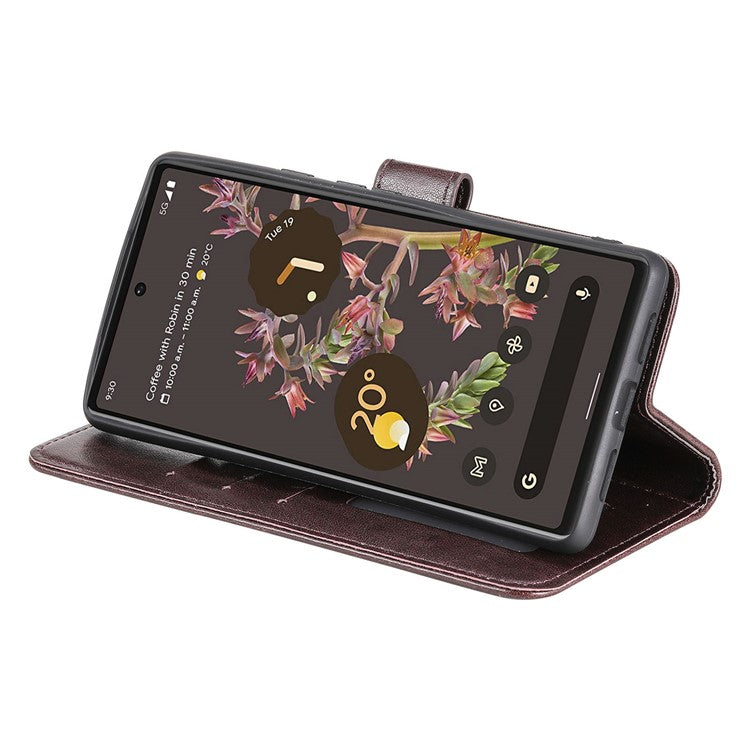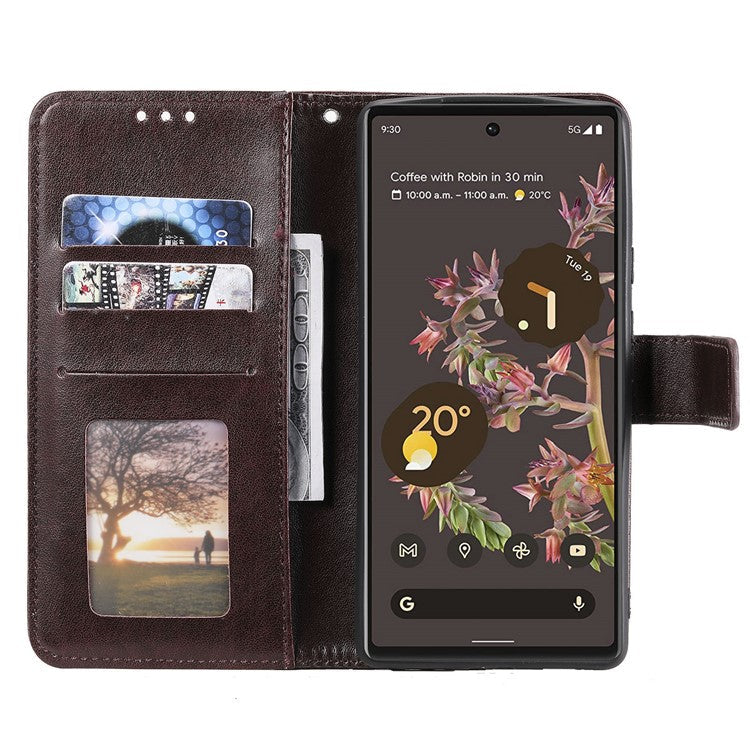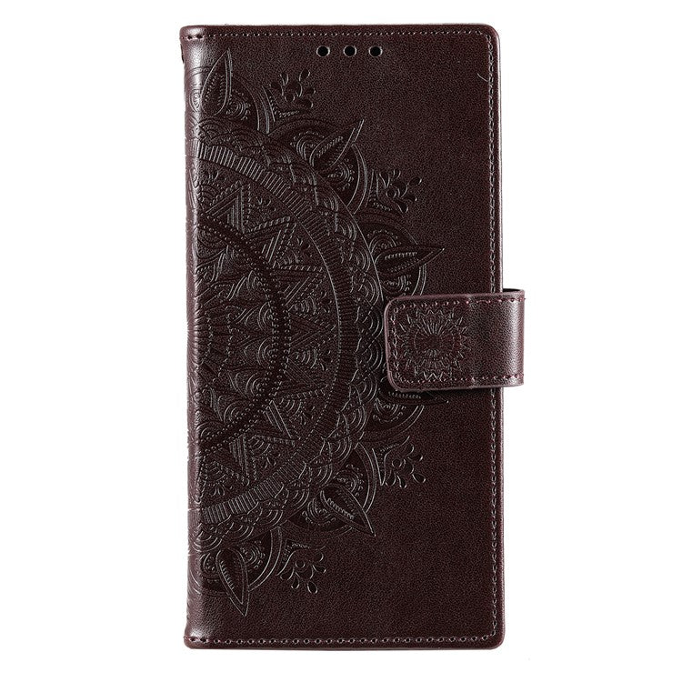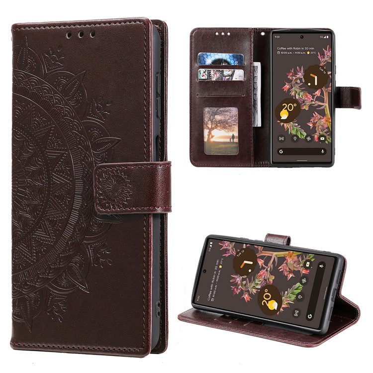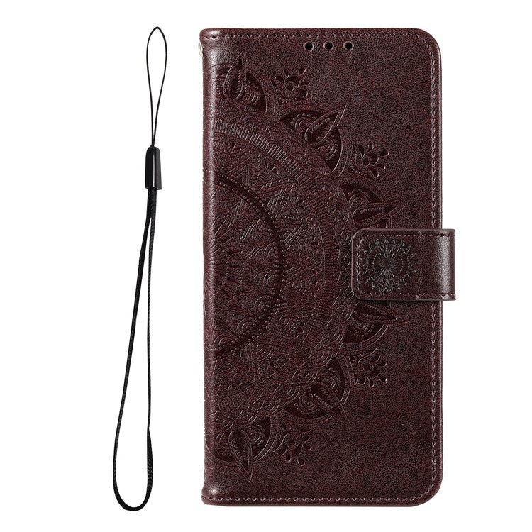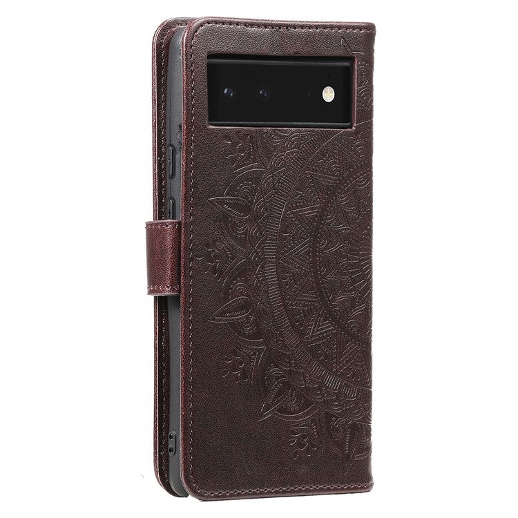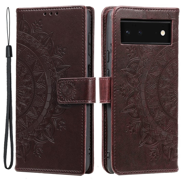 Mandala Flower Pattern Imprinted PU Leather Flip Cover Stand Wallet Folio Phone Case with Strap for Google Pixel 6 - Brown