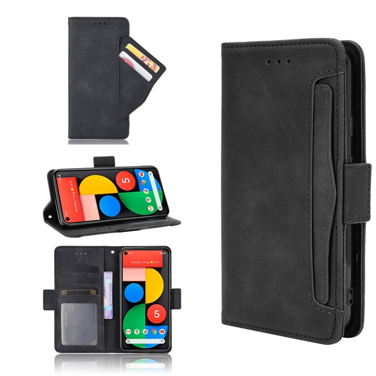 Protective Leather Case with Multiple Card Slots Phone Cover for Google Pixel 5 - Black