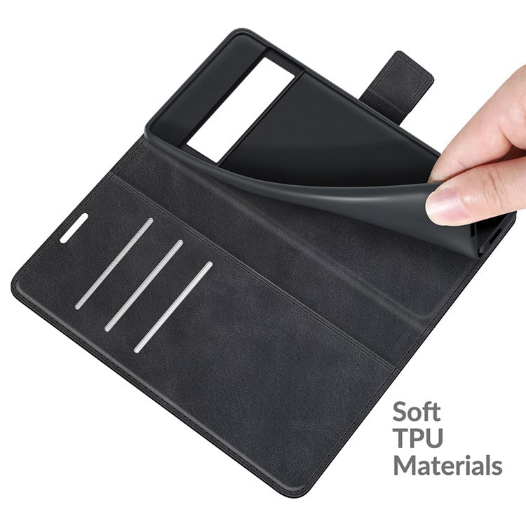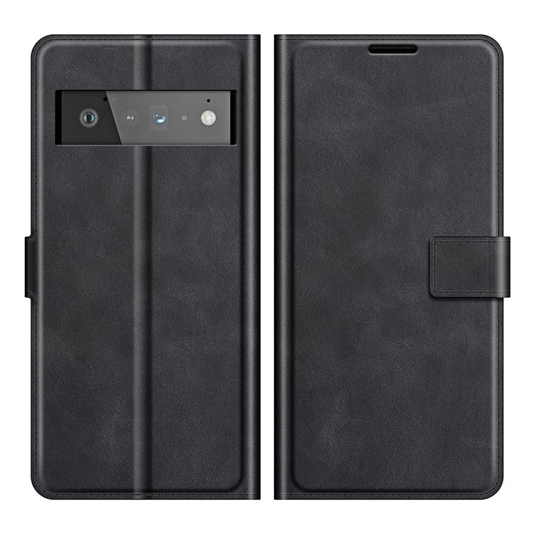 PU Leather Flip Folio Stand Magnetic Closure Shockproof Wallet Case for Google Pixel 6 Pro - Black