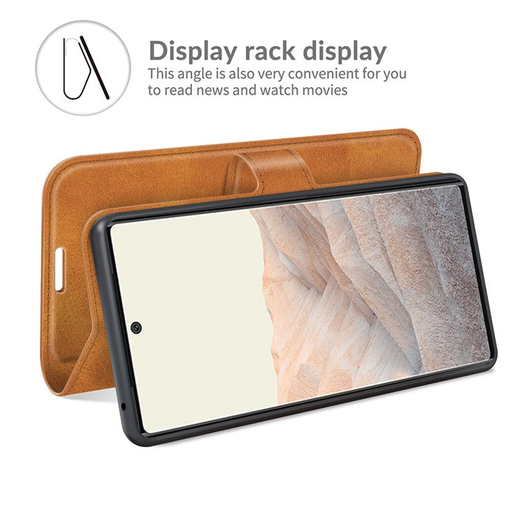 PU Leather Flip Folio Stand Magnetic Closure Shockproof Wallet Case for Google Pixel 6 Pro - Light Brown