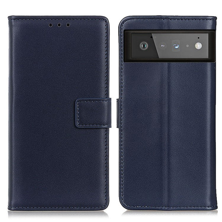 PU Leather Protective Phone Wallet Stand Shell Case for Google Pixel 6 - Blue