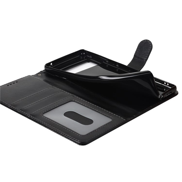 R61 Texture Felled Seam PU Leather Cover Wallet Phone Case Shell with Foldable Stand for Google Pixel 6 Pro - Black