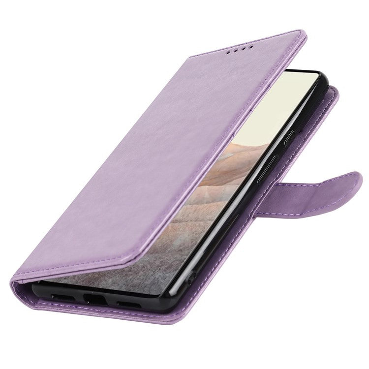 R61 Texture Felled Seam Shockproof Leather Case Wallet Stand Flip Phone Cover with Strap for Google Pixel 6 - Purple