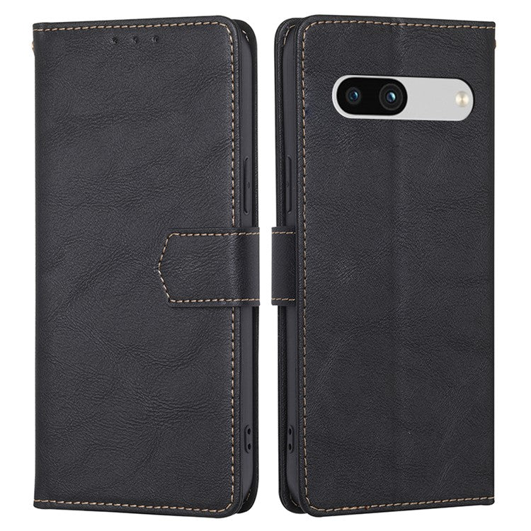RFID Blocking Phone Cover For Google Pixel 7a, Cowhide Texture PU Leather Stand Wallet Shockproof Phone Case - Black