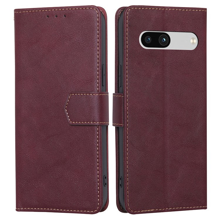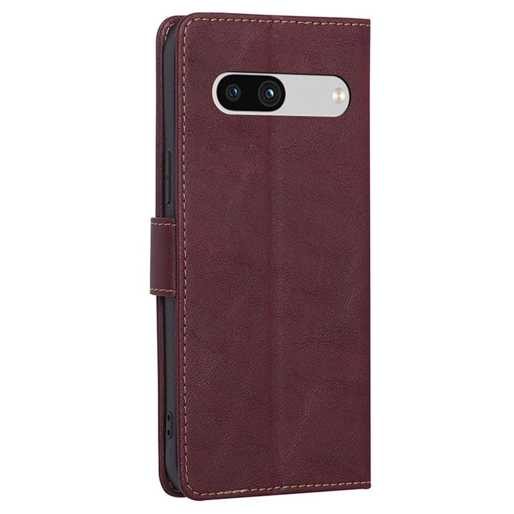 RFID Blocking Phone Cover For Google Pixel 7a, Cowhide Texture PU Leather Stand Wallet Shockproof Phone Case - Wine Red