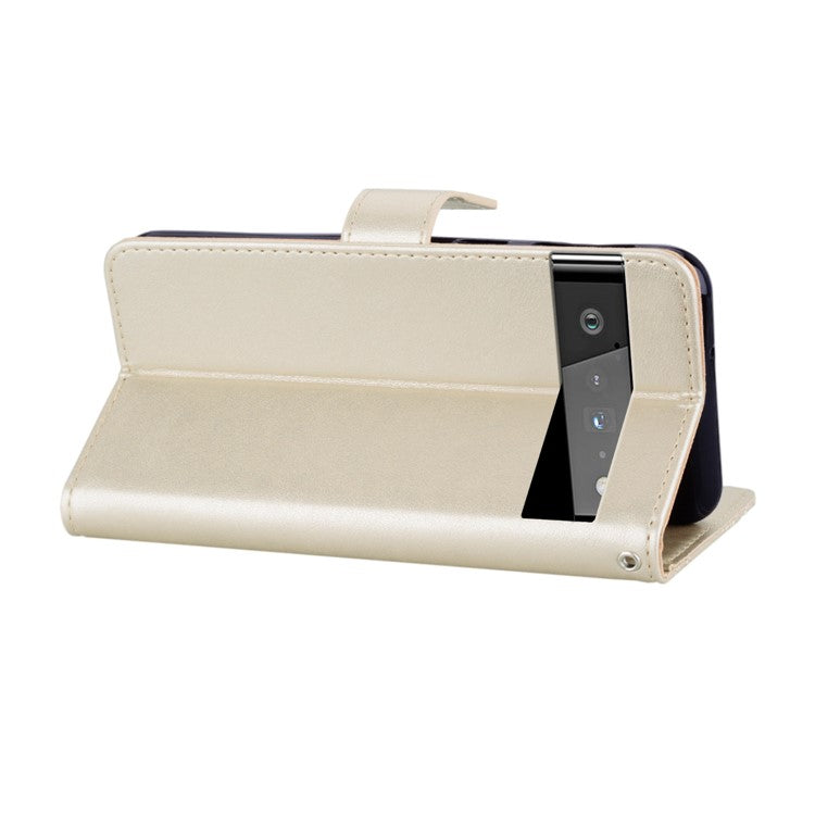 Scratch-resistant Flip Phone Case Imprinted Owl Flower Pattern Leather Wallet Shell for Google Pixel 6 Pro - Gold