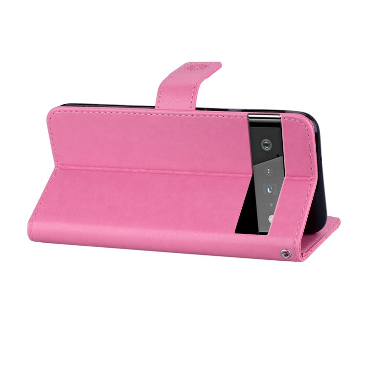 Scratch-resistant Flip Phone Case Imprinted Owl Flower Pattern Leather Wallet Shell for Google Pixel 6 Pro - Rose