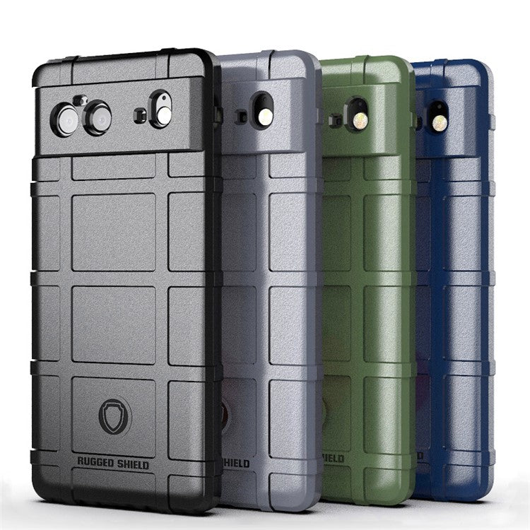 Shock-proof Rugged Square Grid Texture TPU Phone Cover Case for Google Pixel 6 - Black