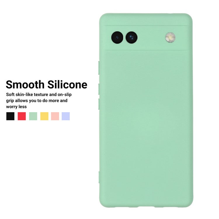 Soft Touch Liquid Silicone Microfiber Lining Anti-Shock Flexible Phone Case with Strap for Google Pixel 6a - Green