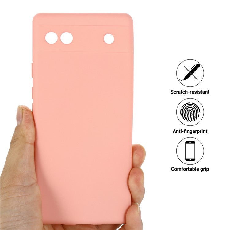 Soft Touch Liquid Silicone Microfiber Lining Anti-Shock Flexible Phone Case with Strap for Google Pixel 6a - Pink