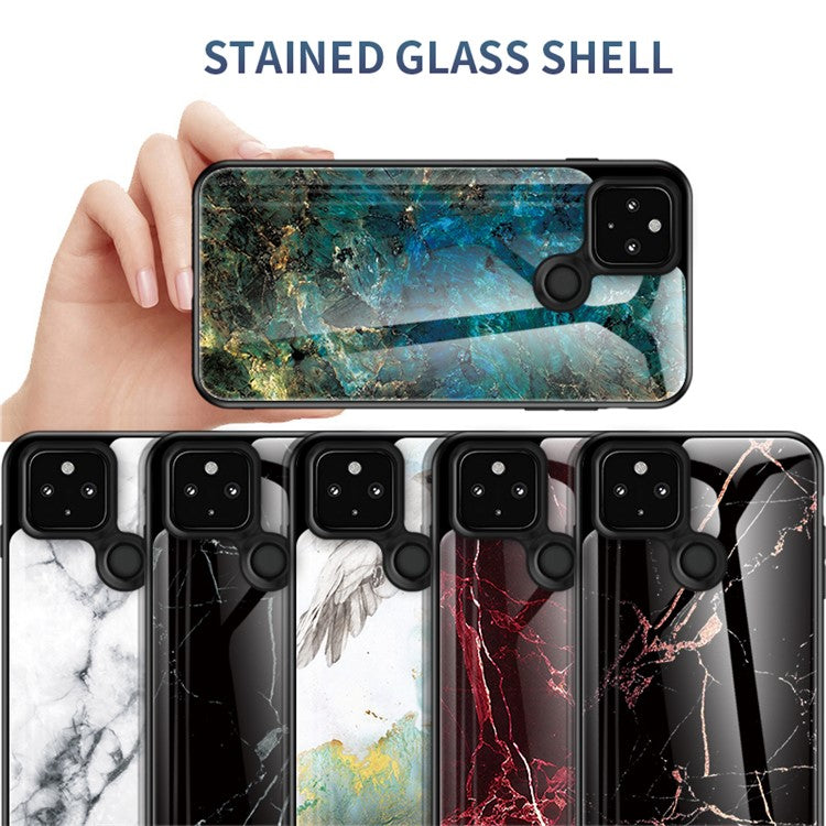 Soft TPU Edge + Marbling Tempered Glass Cell Phone Hybrid Cover for Google Pixel 4a 5G - Emerald Marble