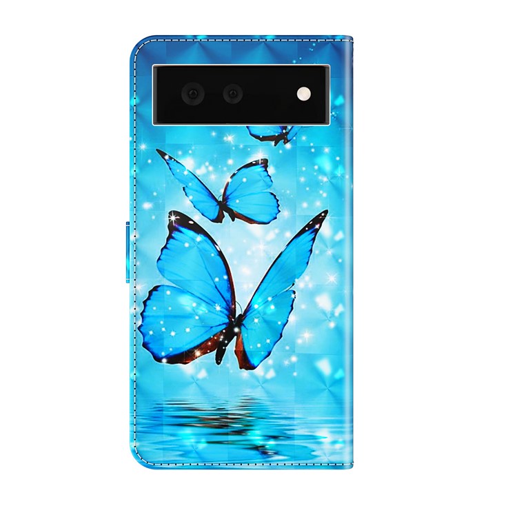 Stand Feature 3D Creative Pattern PU Leather Magnetic Flip Wallet Case with Strap for Google Pixel 6 - Blue Butterflies