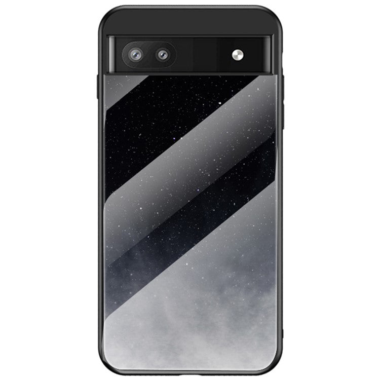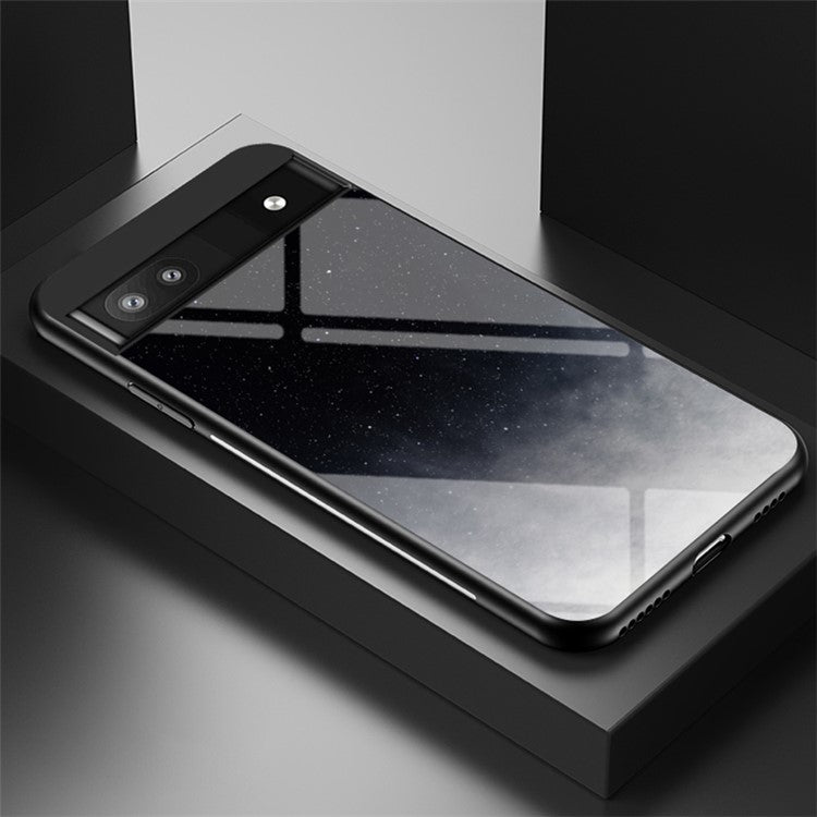 Starry Sky Pattern Tempered Glass + PC + TPU Slim Light Phone Case for Google Pixel 6a - Starry Crescent Moon