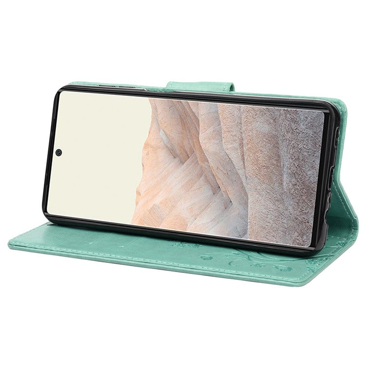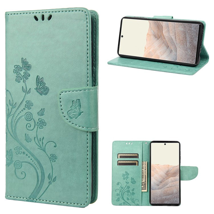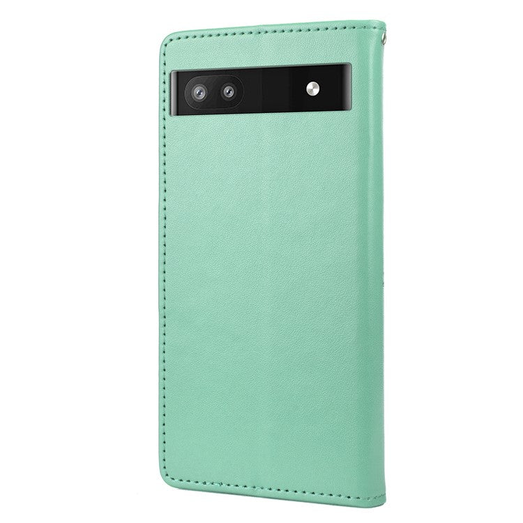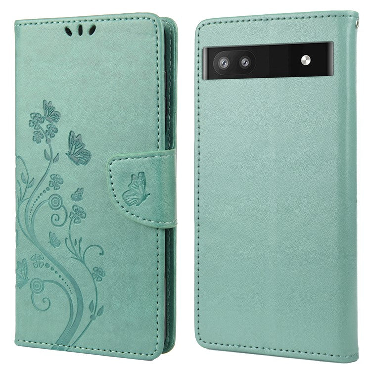 Stylish Imprint Butterflies Leather Phone Case Practical Wallet Stand Covering for Google Pixel 6a - Green