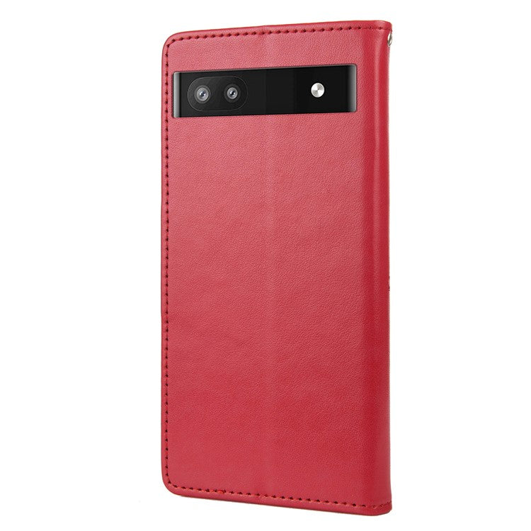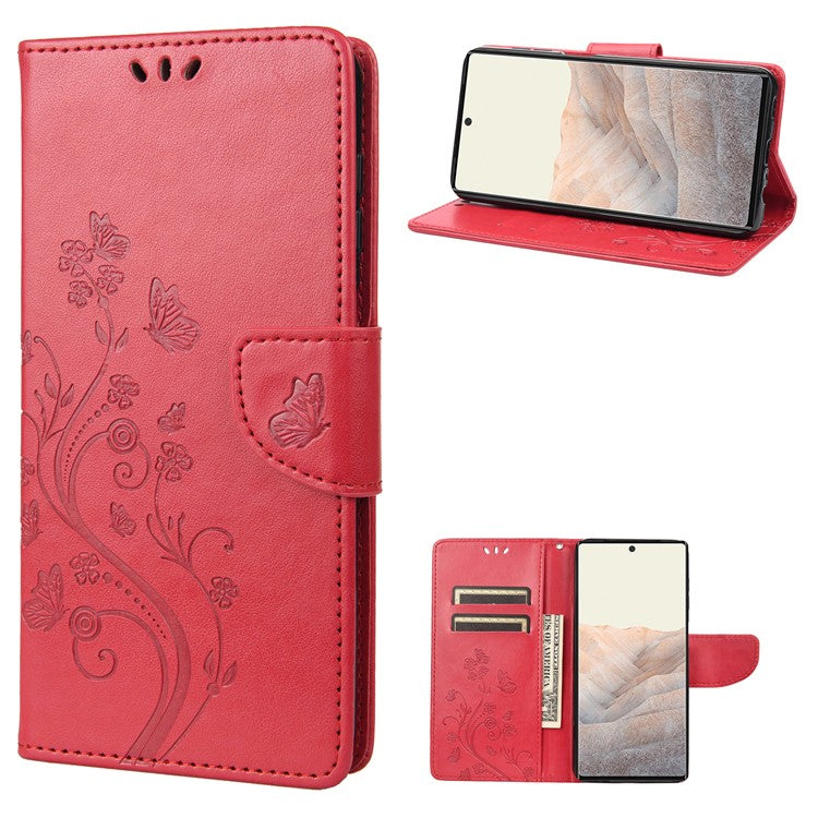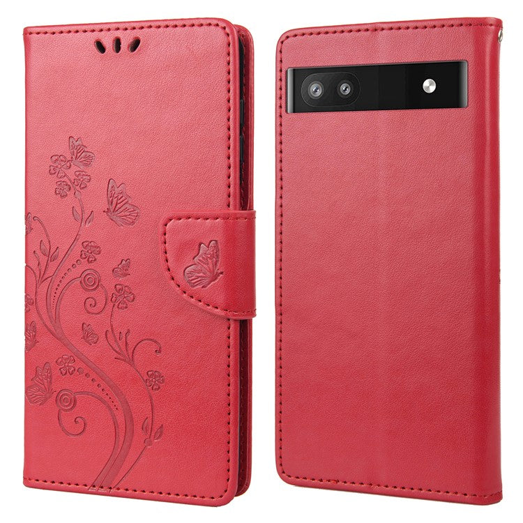 Stylish Imprint Butterflies Leather Phone Case Practical Wallet Stand Covering for Google Pixel 6a - Red
