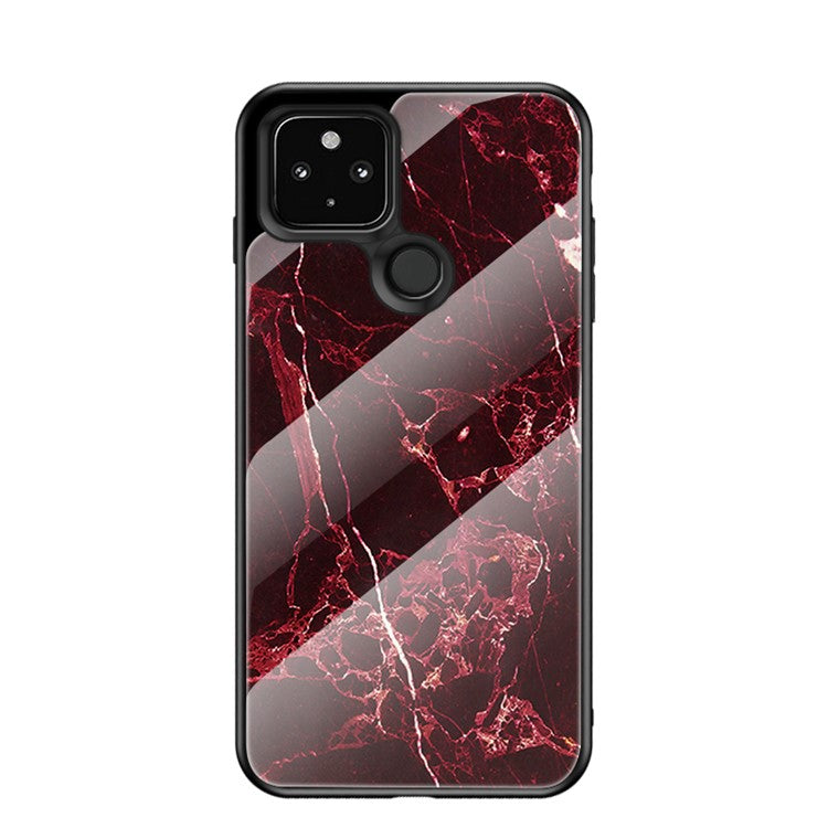 Stylish Marbling Pattern Tempered Glass Cell Phone Hybrid Cover for Google Pixel 5 - Blood Red Marble