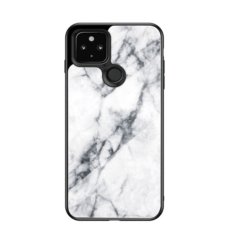 Stylish Marbling Pattern Tempered Glass Cell Phone Hybrid Cover for Google Pixel 5 - White Marble