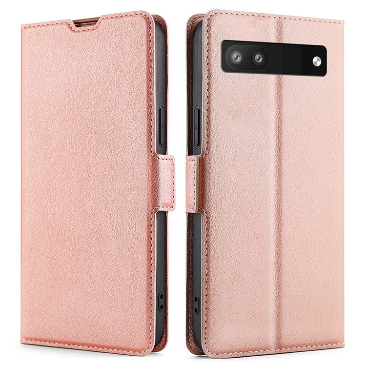 Ultra-thin Side Magnetic Clasp PU Leather Card Slot Design Anti-drop Phone Cover Stand Case for Google Pixel 6a - Rose Gold
