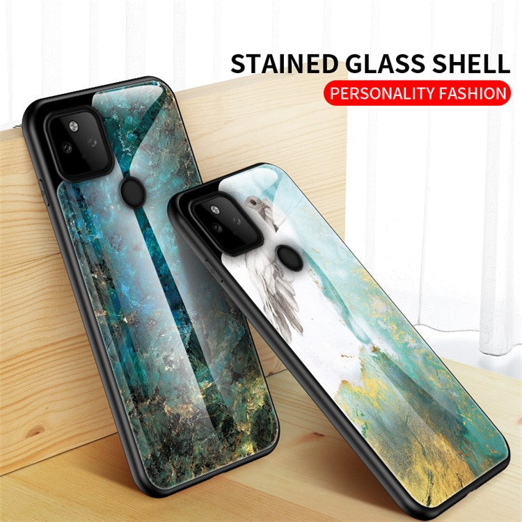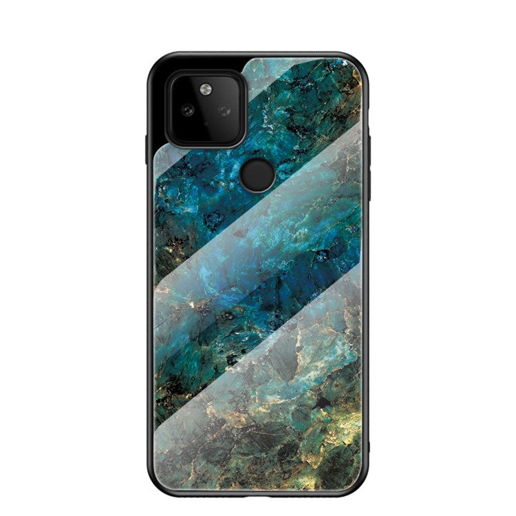 Well-Protected Anti-Scratch Marbling Pattern Design Tempered Glass Cell Phone Cover for Google Pixel 5a 5G - Emerald Marble