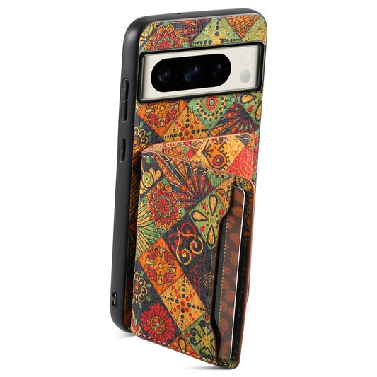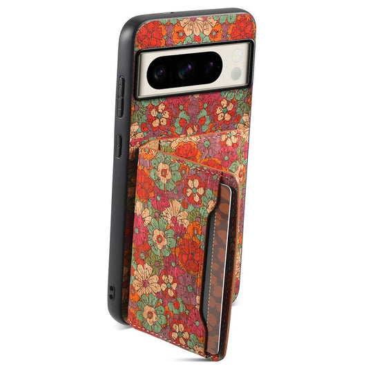 For Google Pixel 8 Pro Case Floral Pattern Card Slot Kickstand PU+TPU+PC Phone Shell - Winter / Blue