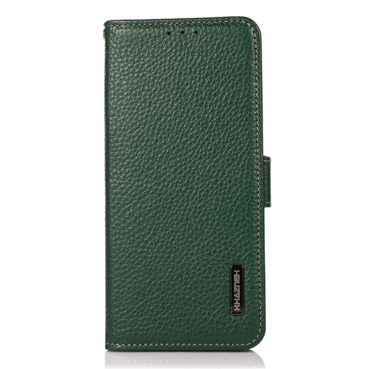 KHAZNEH Genuine Leather + TPU RFID Blocking Phone Case with Stand Wallet for Google Pixel 6a - Green