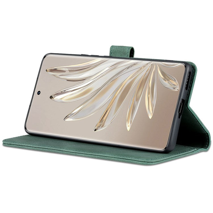 AZNS For Honor 70 5G Drop-proof PU Leather Flip Wallet Case Viewing Stand Magnetic Closure Cover Phone Protective Shell - Green