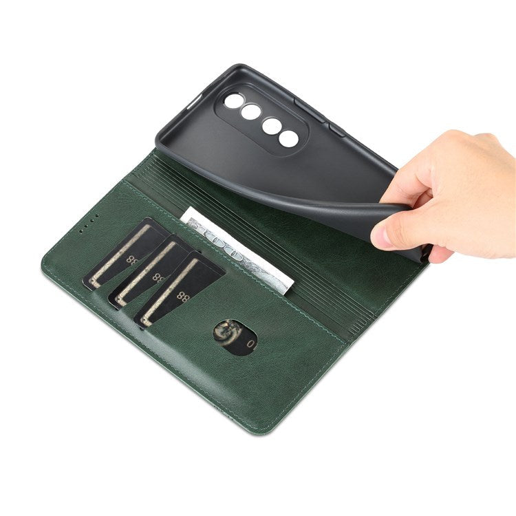 AZNS for Honor 70 Pro 5G Shockproof PU Leather Wallet Flip Cover Magnetic Absorption Stand Anti-scratch Folio Phone Case - Blackish Green
