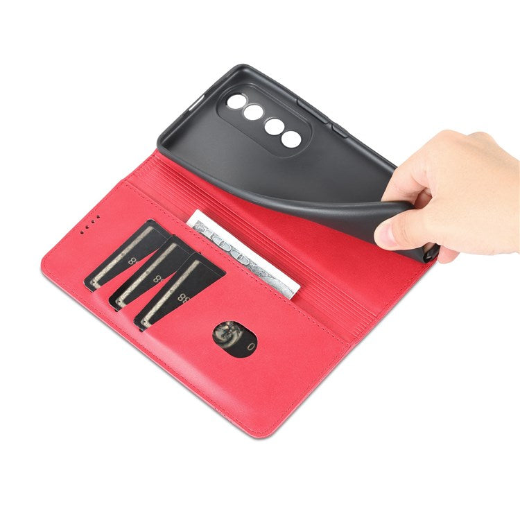 AZNS for Honor 70 Pro 5G Shockproof PU Leather Wallet Flip Cover Magnetic Absorption Stand Anti-scratch Folio Phone Case - Red