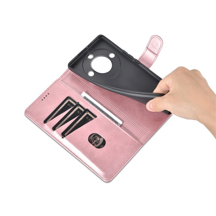 AZNS For Honor X40 5G Phone Protective Flip Cover Shockproof PU Leather + TPU Interior Case with Stand - Rose Gold
