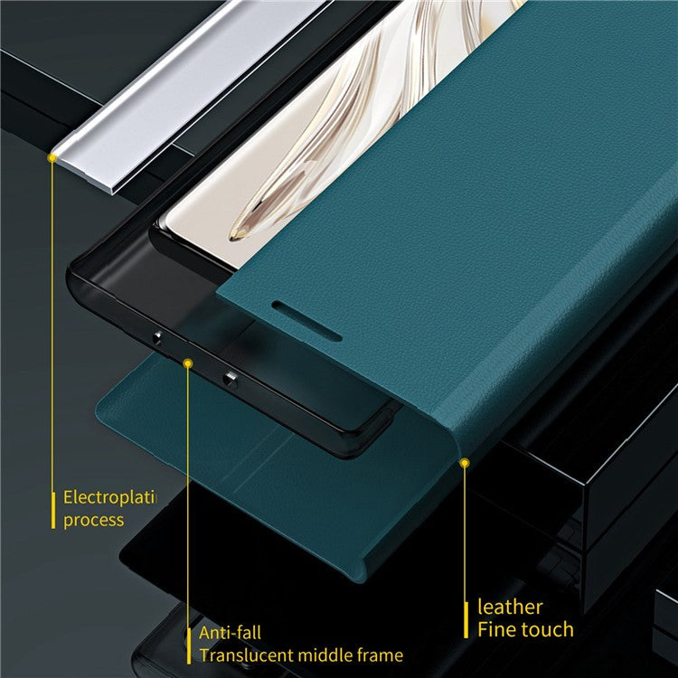 For Honor 70 5G Electroplating PU Leather Flip Stand Cover Auto Adsorption Phone Drop-proof Case - Baby Blue
