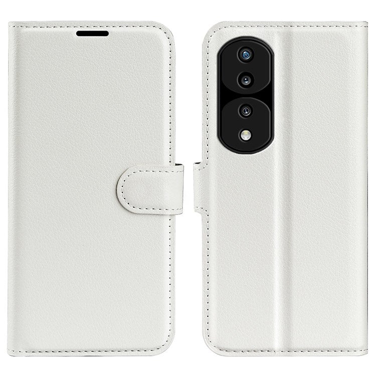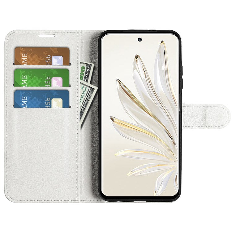 For Honor 70 5G Litchi Texture Wallet Case PU Leather Stand Shockproof TPU Inner Shell Flip Folio Cover - White