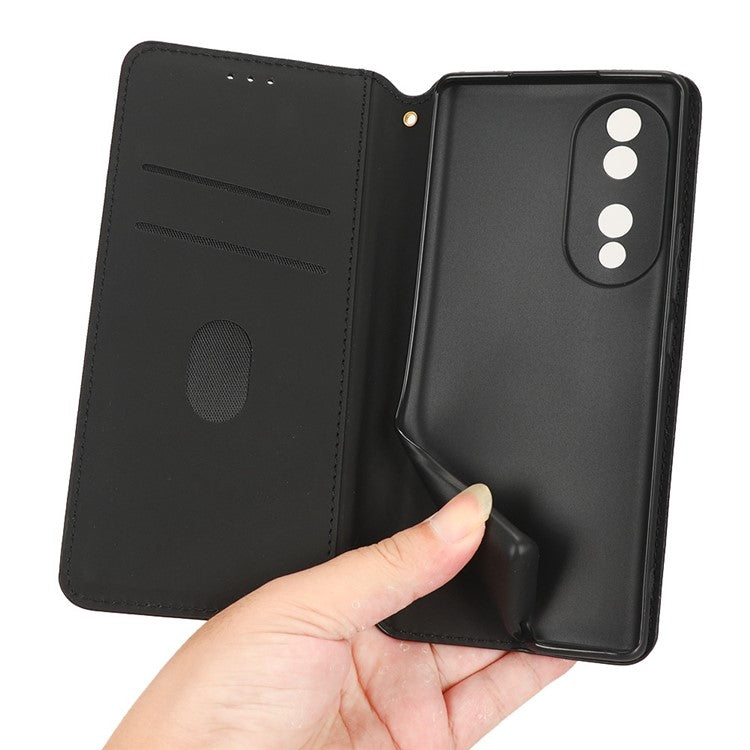 For Honor 70 5G Magnetic Auto-absorbed PU Leather Case Rhombus Pattern Imprinted Phone Cover with Wallet Stand - Blue
