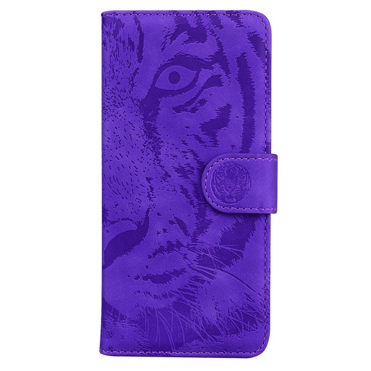 For Honor 70 5G PU Leather Flip Cover Tiger Pattern Imprinted Wallet Stand Protective Phone Case - Purple