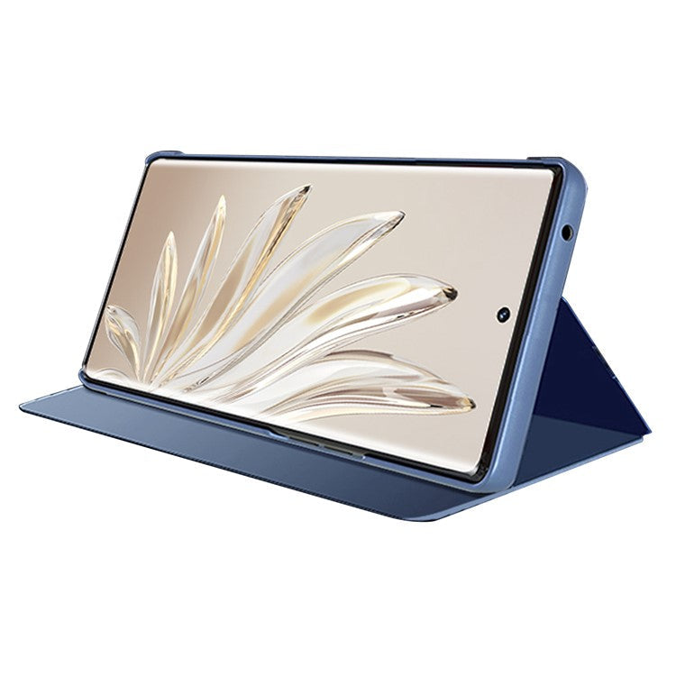 For Honor 70 5G PU Leather Mirror Surface Electroplating Cover View Window Full Body Protective Phone Stand Case - Gold