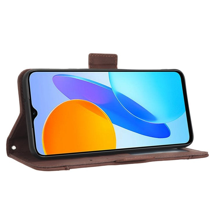 For Honor 70 Lite 5G / X6 4G / Honor Play6C / X8 5G Anti-drop PU Leather Folio Phone Case Stand Multiple Card Slots Magnetic Protective Flip Cell Phone Cover - Brown