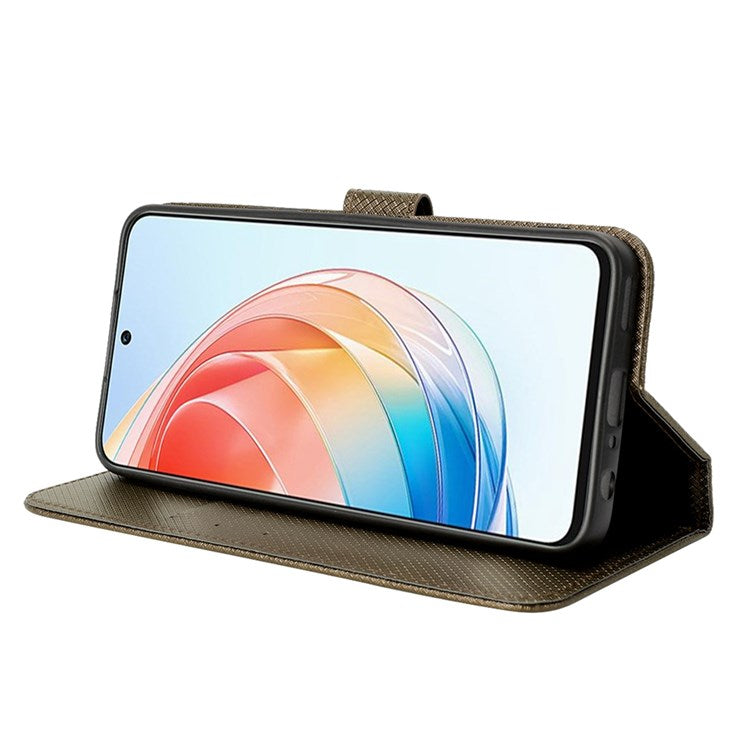 For Honor X40i 5G / Play7T Pro 5G Drop-proof Phone Flip Wallet Case Well-protected Diamond Texture PU Leather Cover Stand Card Holder with Wrist Strap - Brown