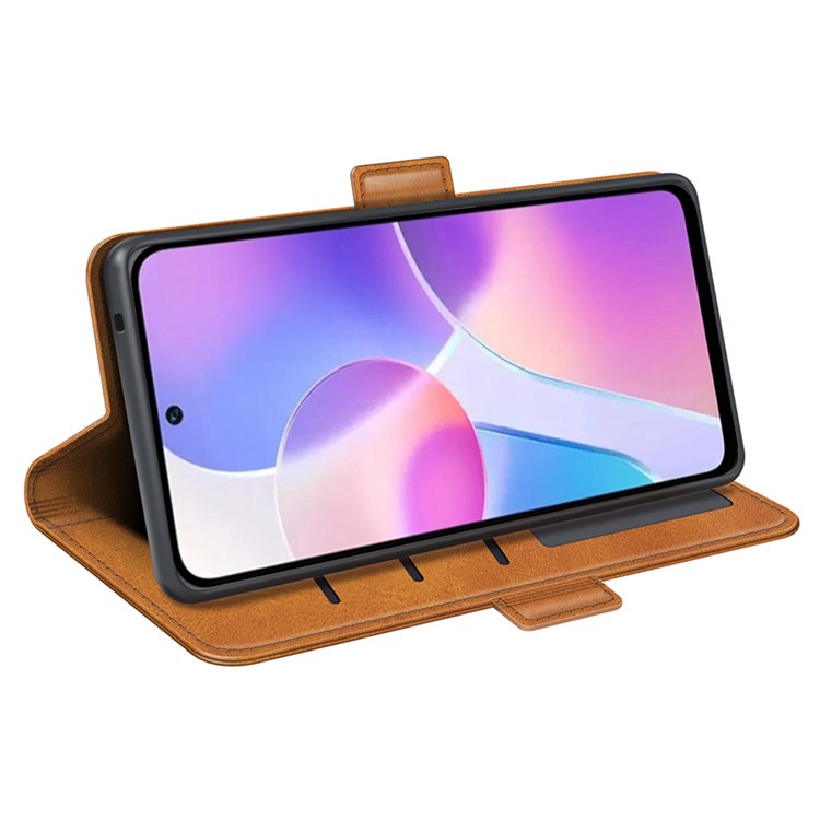 For Honor X40i 5G Shockproof Double Magnetic Clasp Phone Cover Anti-drop Textured PU Leather TPU Case with Wallet Stand - Yellow