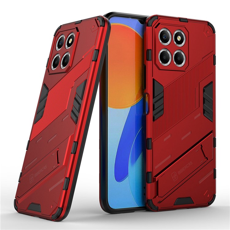 Kickstand Phone Case for Honor X8 5G, Hard PC + Soft TPU Anti-drop Hybrid Protective Cover - Red