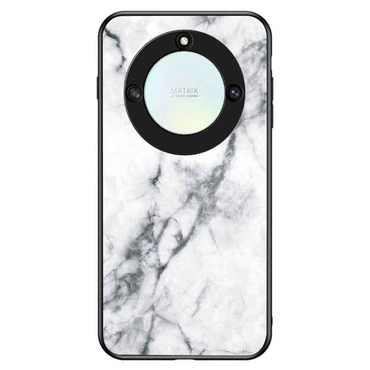 Tempered Glass+PC +TPU Phone Case for Honor X40 5G , Marble Pattern Printing Phone Cover - White Marble