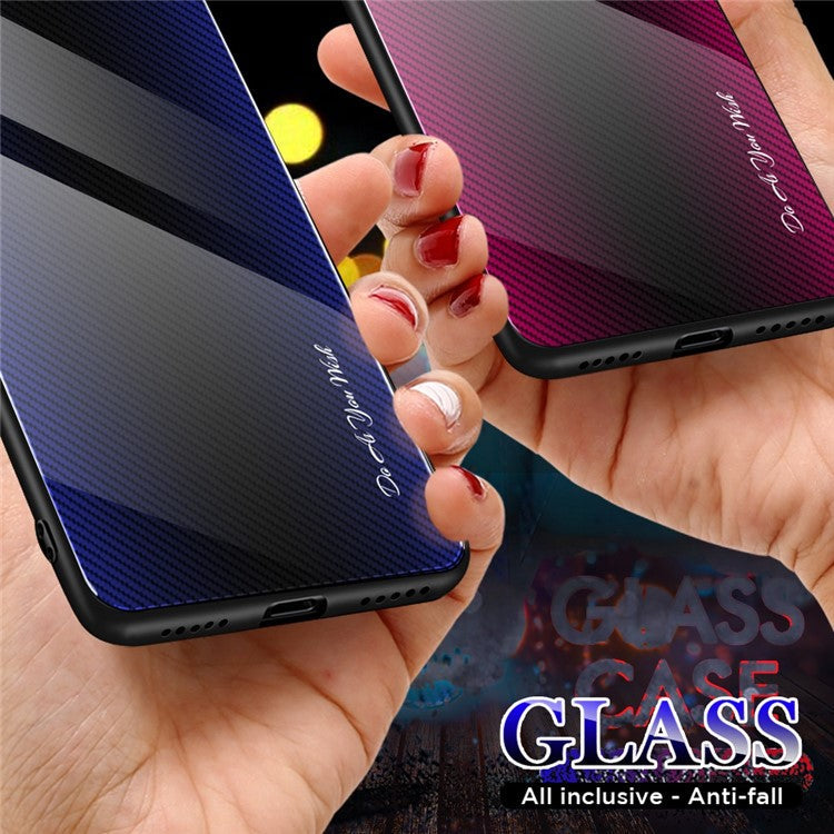 Tempered Glass+TPU Cell Phone Cover for Honor X8 5G, Carbon Fiber Texture Wear-resistant Phone Case - Black