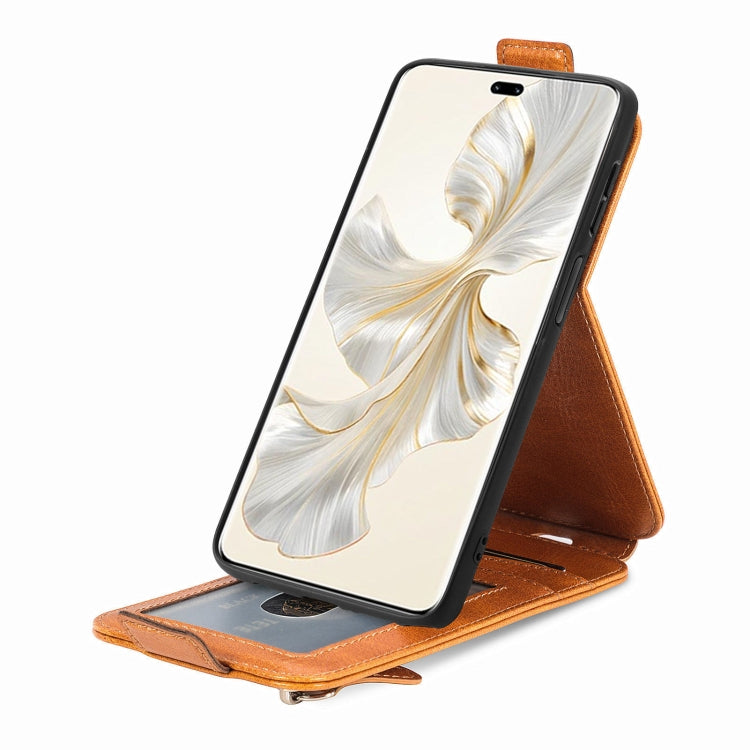For Honor 100 Pro Zipper Wallet Vertical Flip Leather Phone Case(Brown)