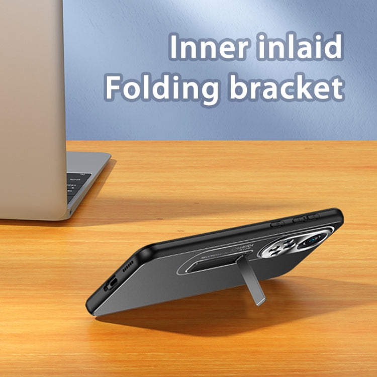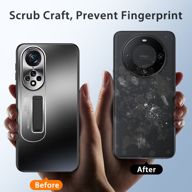 For Honor 50 Pro Frosted Metal Hybrid TPU Holder Phone Case(Silver)