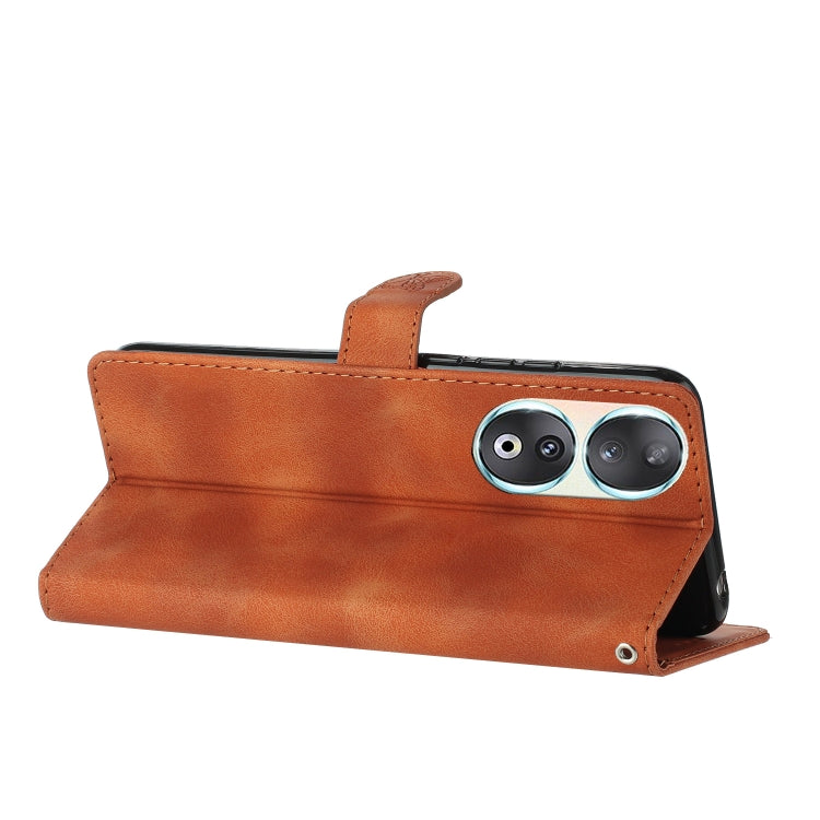 For Honor 90 Flower Butterfly Embossing Pattern Leather Phone Case(Brown)
