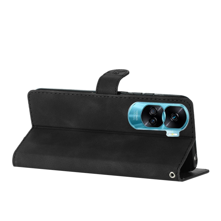For Honor 90 Lite Flower Butterfly Embossing Pattern Leather Phone Case(Black)