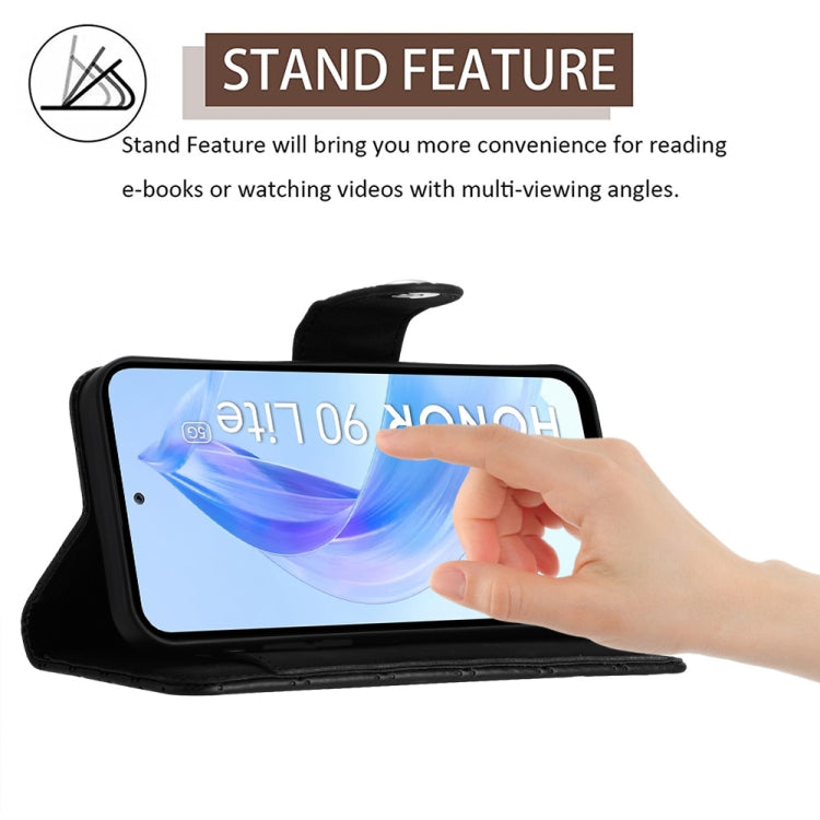 For Honor 90 Lite Rhombic Texture Flip Leather Phone Case with Long Lanyard(Black)
